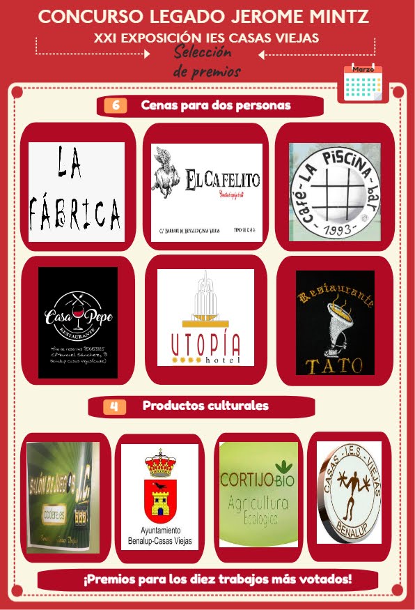 Dentro de los actos relativos a la XXI exposición del IES Casas Viejas se ha convocado un concurso para los diez trabajos del alumnado que más votos consigan entre los emitidos en la misma exposición.