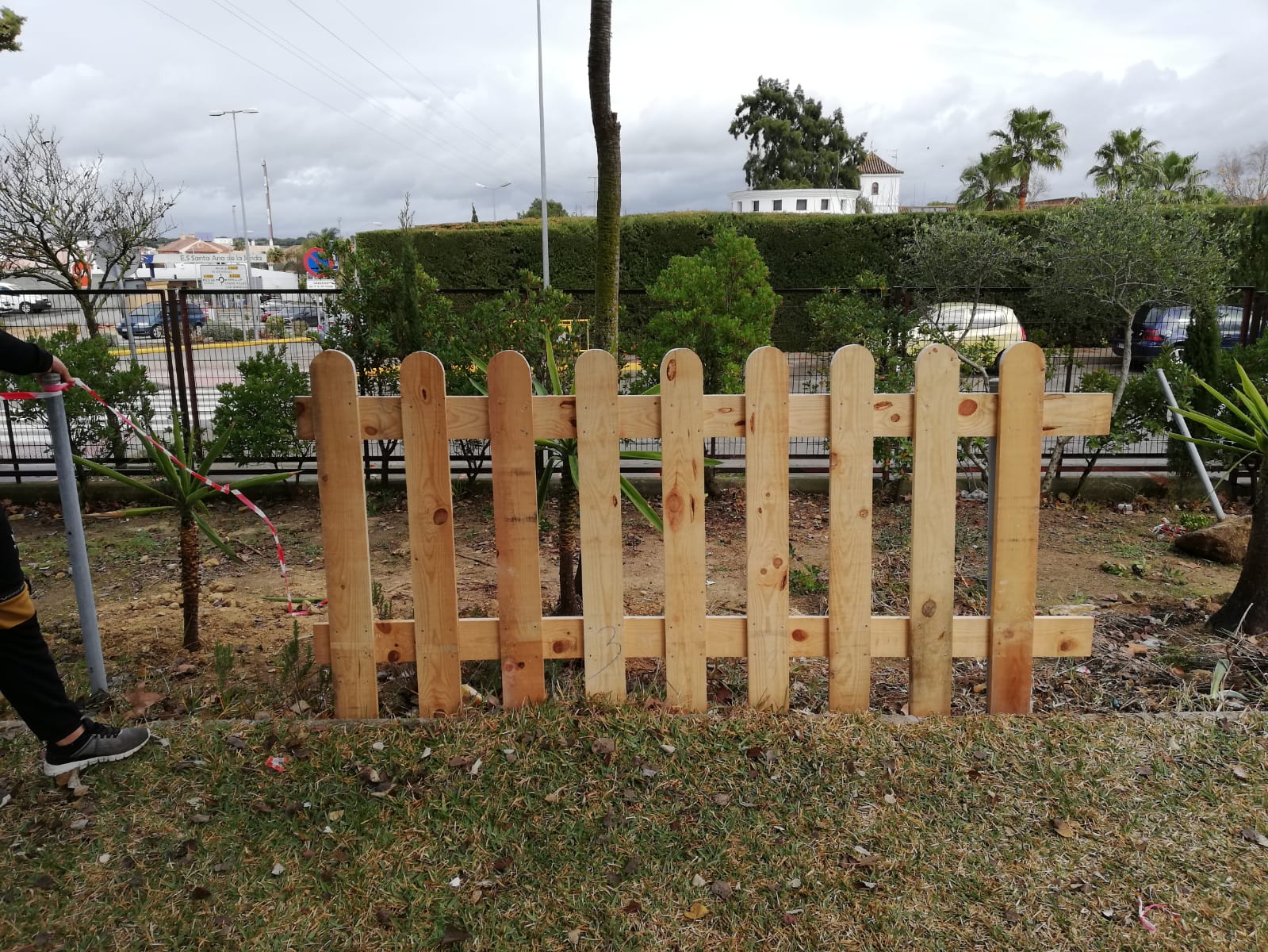 Este vallado de las zonas ajardinadas de uno de los laterales del centro, se encontraba en mal estado. En primer lugar se ha retirado el vallado metálico con el que contaba anteriormente la zona. A continuación se está fabricando un vallado de madera.